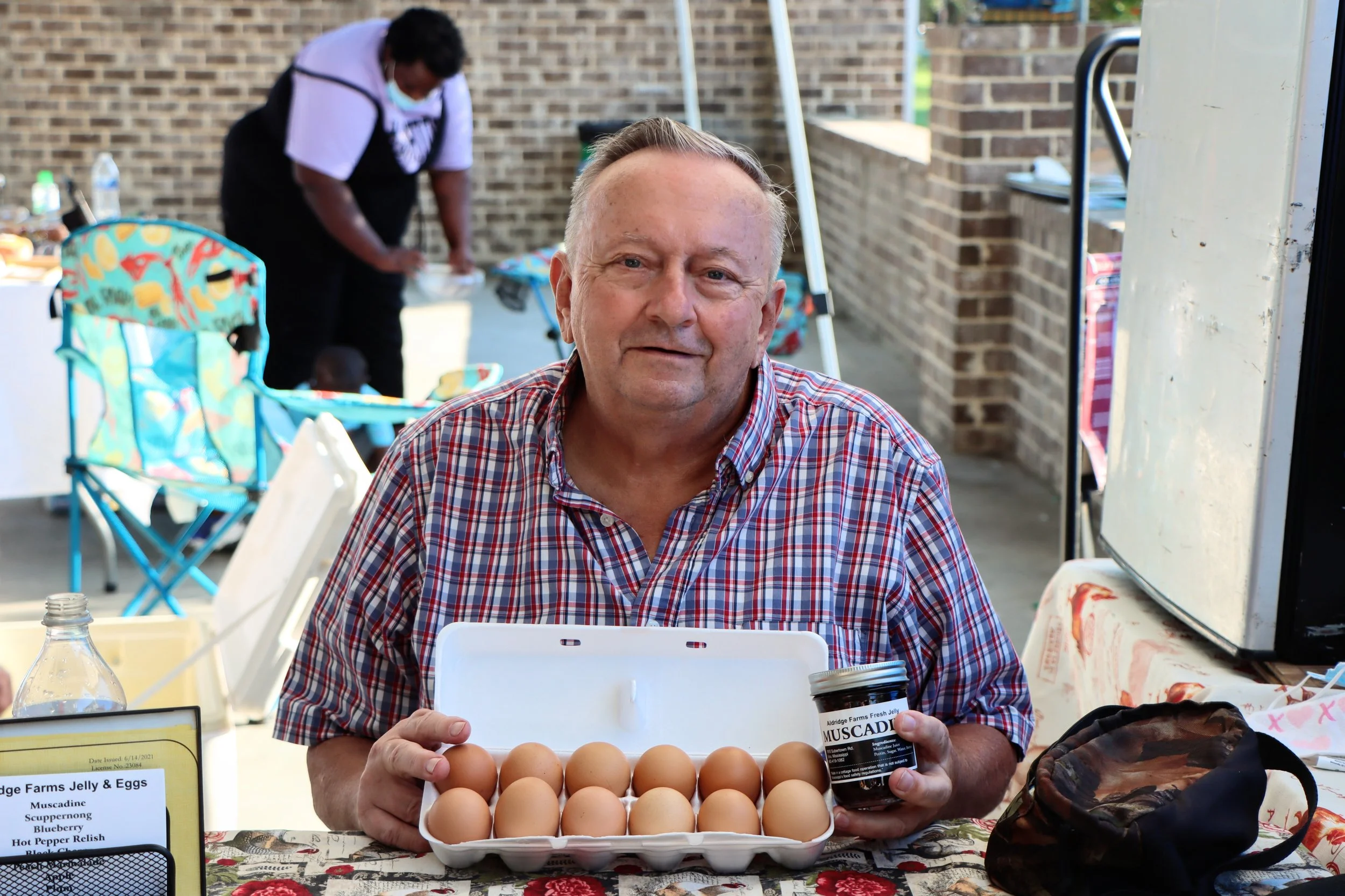 Mr. Stark Aldridge is known for more than just his fresh brown eggs. He is OXCM's unofficial market greeter. Every single customer who walks into the market is greeted by this friendly farmer who lives just up in road in Ecru, a little community in Pontotoc County. He's almost as sweet as his homemade jams and jellies!